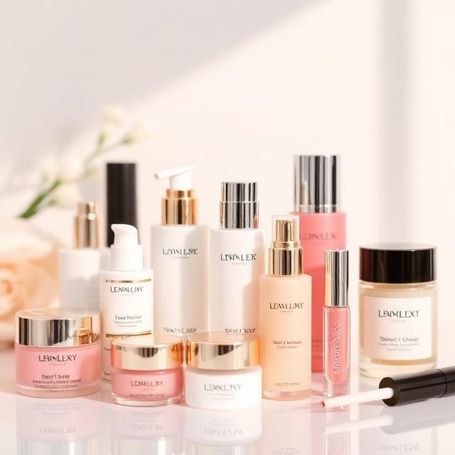 Beauty products, skincare, and haircare supplies.