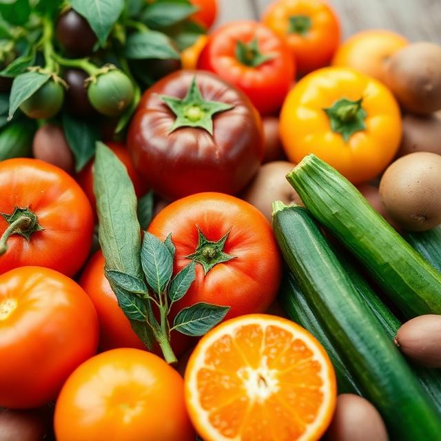Fresh and frozen produce including oranges, citrus, tomatoes, potatoes and cucumbers.