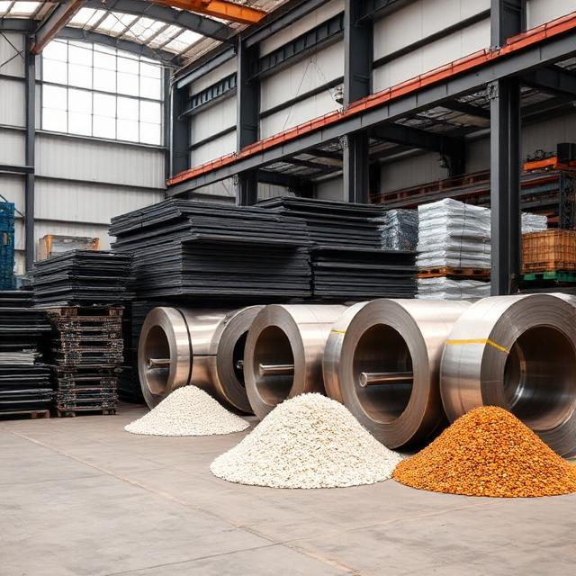 Metals, plastics, chemical compounds, and industrial products.